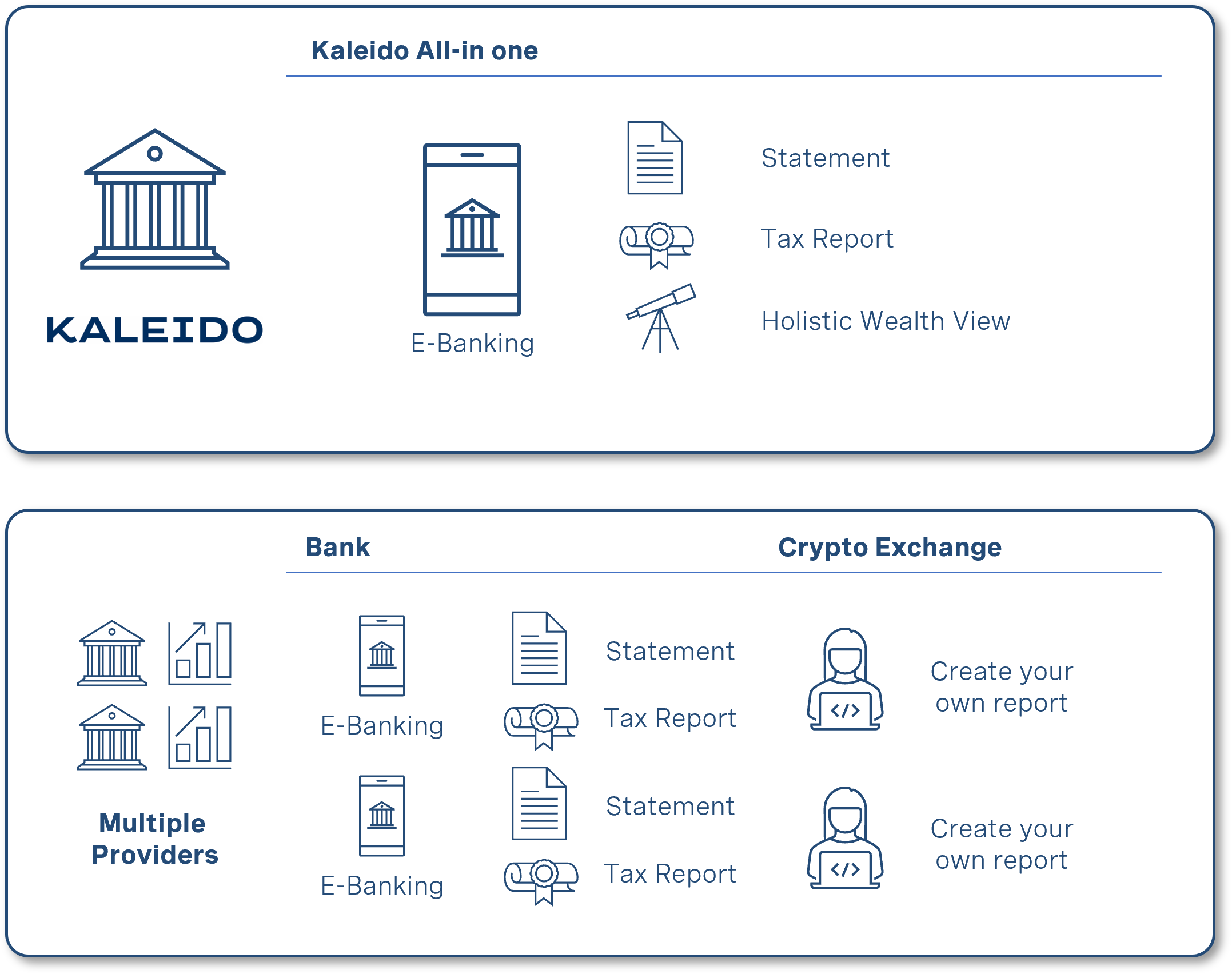 When it comes to digital assets, which include cryptocurrencies as well as tokenised assets such as shares, bonds, commodities and alternative investments such as works of art, a fully licensed bank in Switzerland like Kaleido Private Bank has significant advantages as a service provider for certain client groups compared to a form of self-custody.