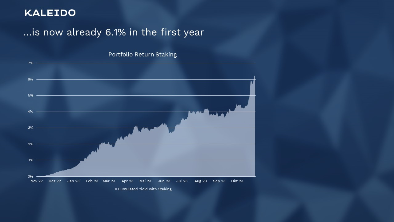 The total Staking Rewards are held in the respective coins, which brought a return of 6.1% in the first year.